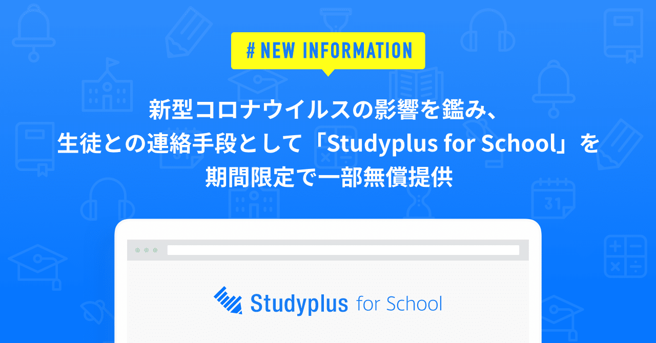 - 生徒との連絡手段として「Studyplus for School」を期間限定で一部無償提供いたします。