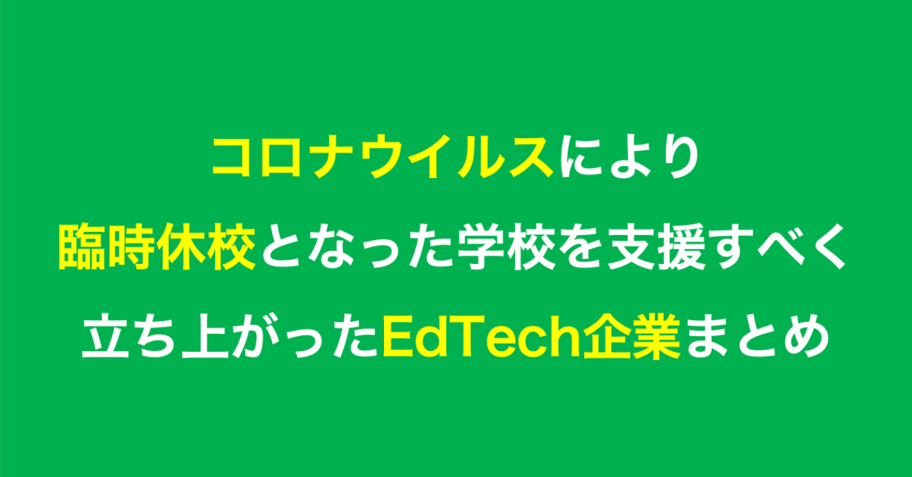 - コロナウイルスにより臨時休校となった学校を支援すべく立ち上がったEdTech企業まとめ